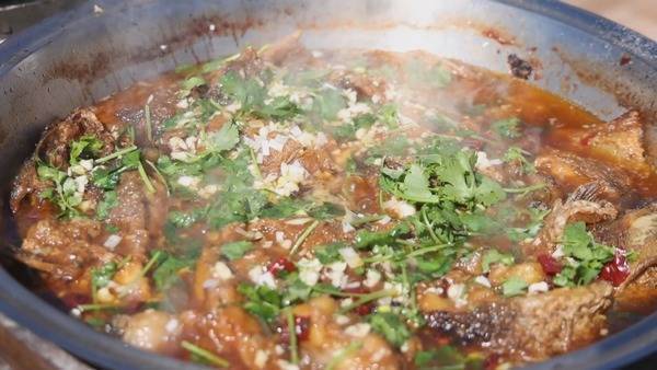 刚刚捕捞上岸的鲜活“开江鱼”被立刻现场烹制,清炖、香酥、生鱼等做法,将江鲜的本味展现得淋漓尽致。再搭配铁锅炖大鹅、杀猪菜等东北特色美食,村民与各界来宾围坐一堂,自助品尝,共庆开江。
