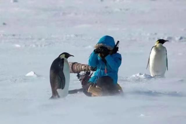 顾莹在南极拍摄帝企鹅
