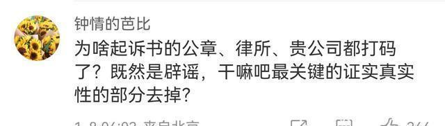 也有网友说道: 为啥起诉书的公章、律所、贵公司都打码了?既然是辟谣,干嘛吧最关键的证实真实性的部分去掉?
