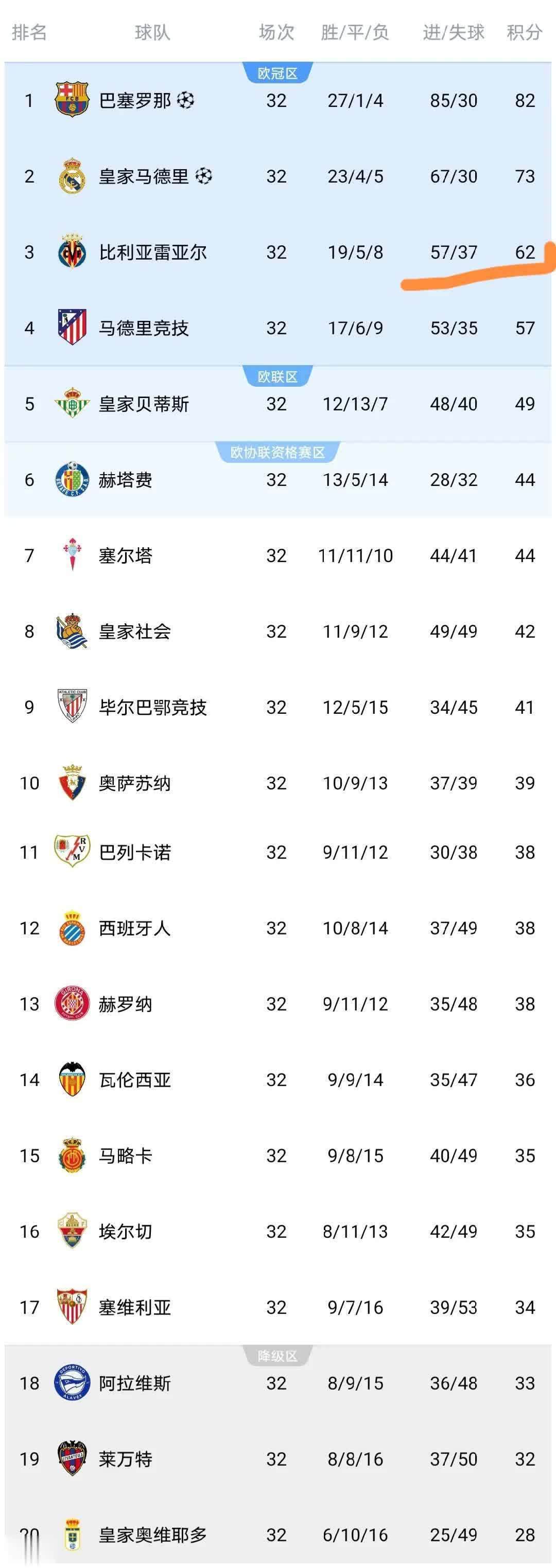至此西甲积分榜格局发生变化:比利亚雷亚尔队积分仅上涨到62分,仅比第4的马竞多出5分,错失了扩大领先优势的良机。巴列卡诺赢球之后,积分上涨到了38分排名第11,而西班牙人积分停留在38分排名第12。塞维利亚积分停留在34分,仅比降级区多1分。莱万特积分上涨到32分,距离安全区2分。皇家奥维耶多队积分上涨到28分,距离安全区6分。